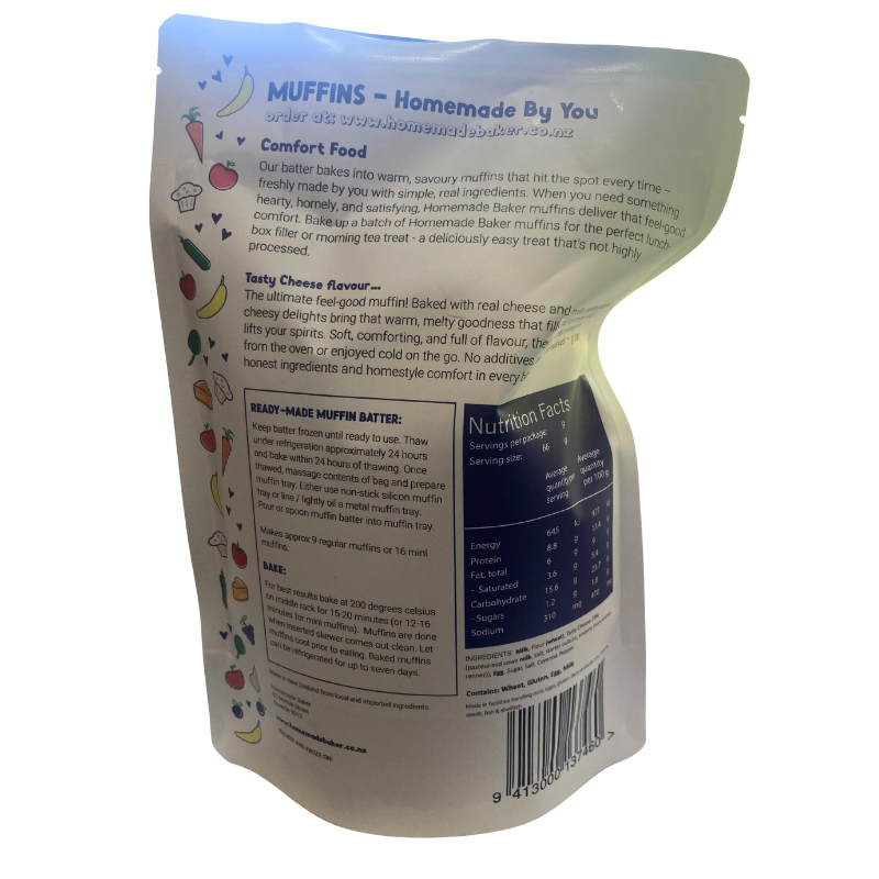 Our Tasty Cheese Muffin Batter bakes into muffins that hit the spot every time - freshly made by you with simple, real ingredients. When you need something hearty, homely, and satisfying, Homemade Baker muffins deliver that cosy, feel-good comfort. Bake up a batch of Homemade Baker muffins for the perfect lunchbox filler or morning tea treat. A deliciously easy treat that is not highly processed.